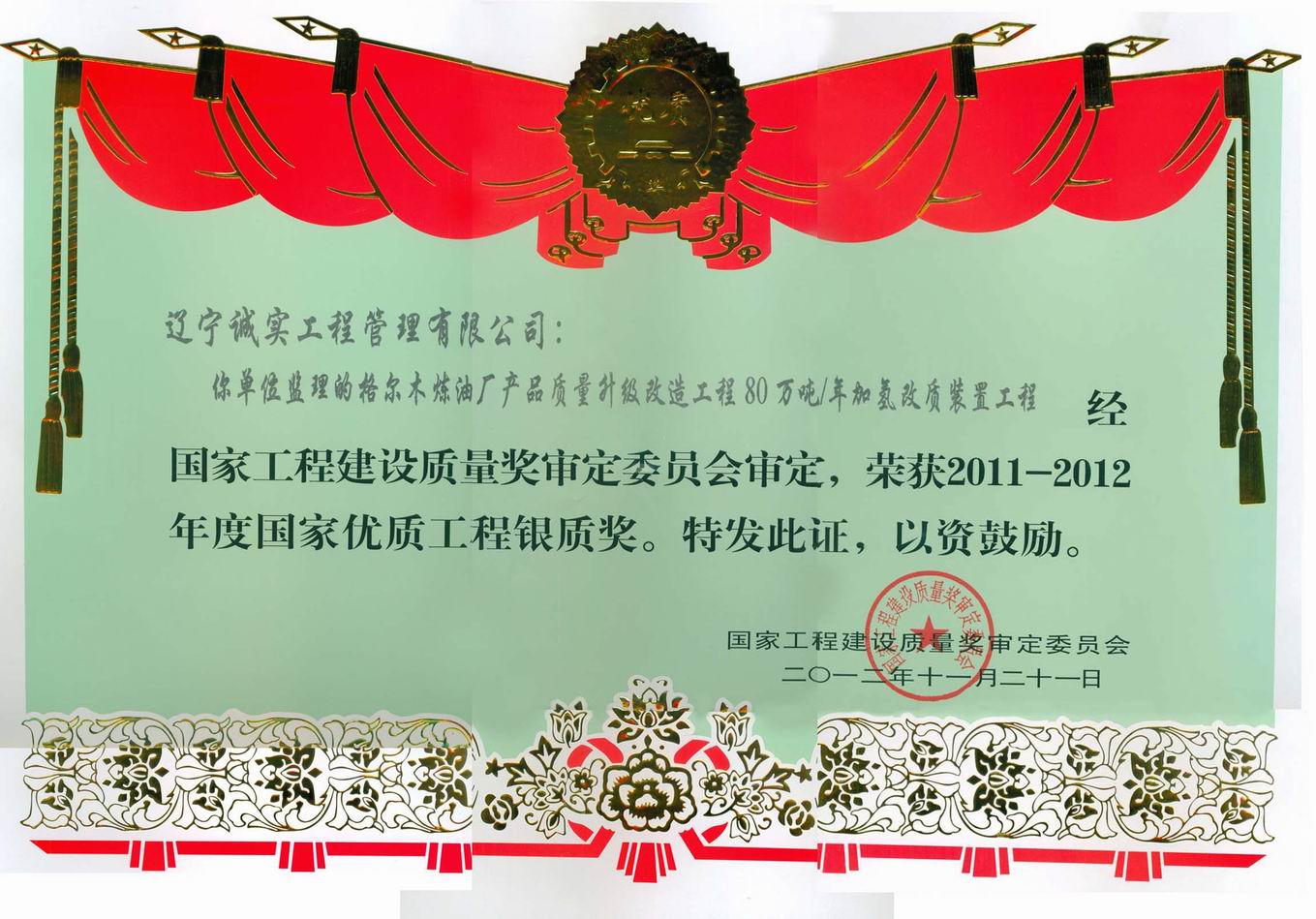 2011-2012年國家優(yōu)質(zhì)工程銀質(zhì)獎(jiǎng)(...