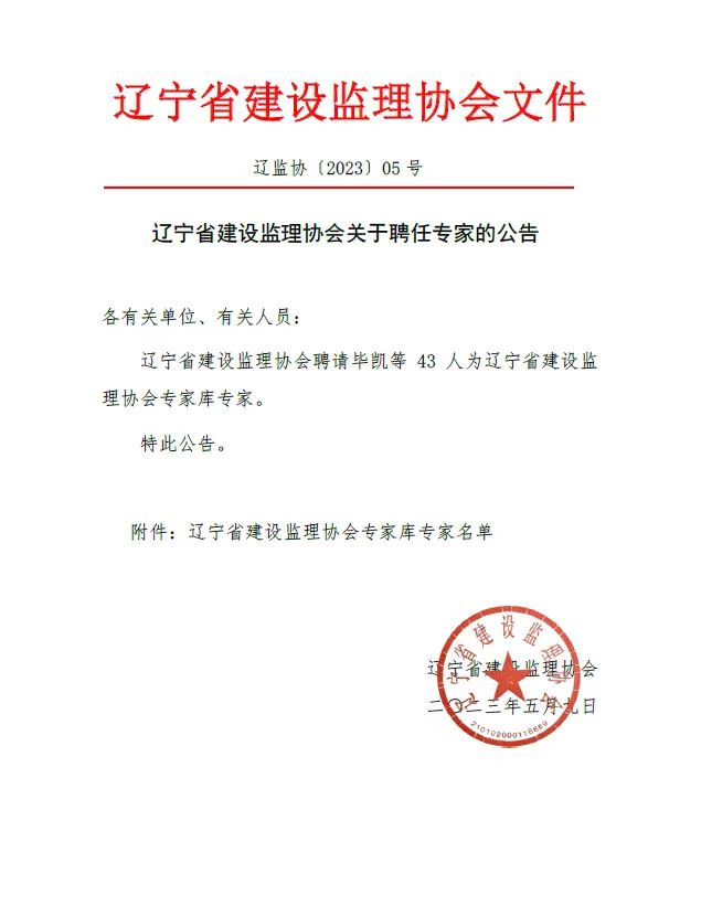 黃思敏同志被聘為遼寧省監理協會專家庫成員