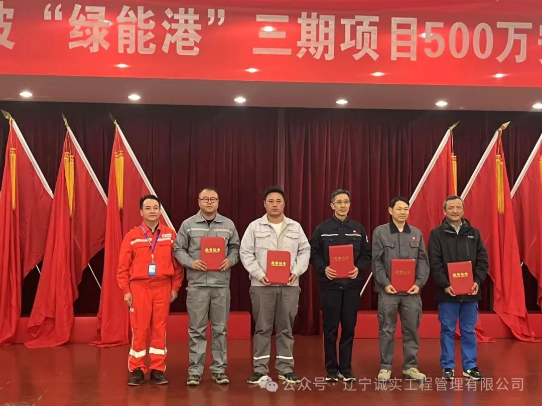 大榭石化聚丙烯項目部全體人員在克服重重困難,揮汗如雨堅守崗位,無論是高聳的構架還是悶熱的受限空間,認真履行著安全、質量驗收各項目崗位職責,確保項目順利推進!還是在今日,1430分,中海油綠能港浙江寧波能源有限公司浙江LNG三期項目場地疊標遷移項目部總監理工程師許曉明被授予項目優秀總監榮譽(圖為王聰(左2)總監代領榮譽)。